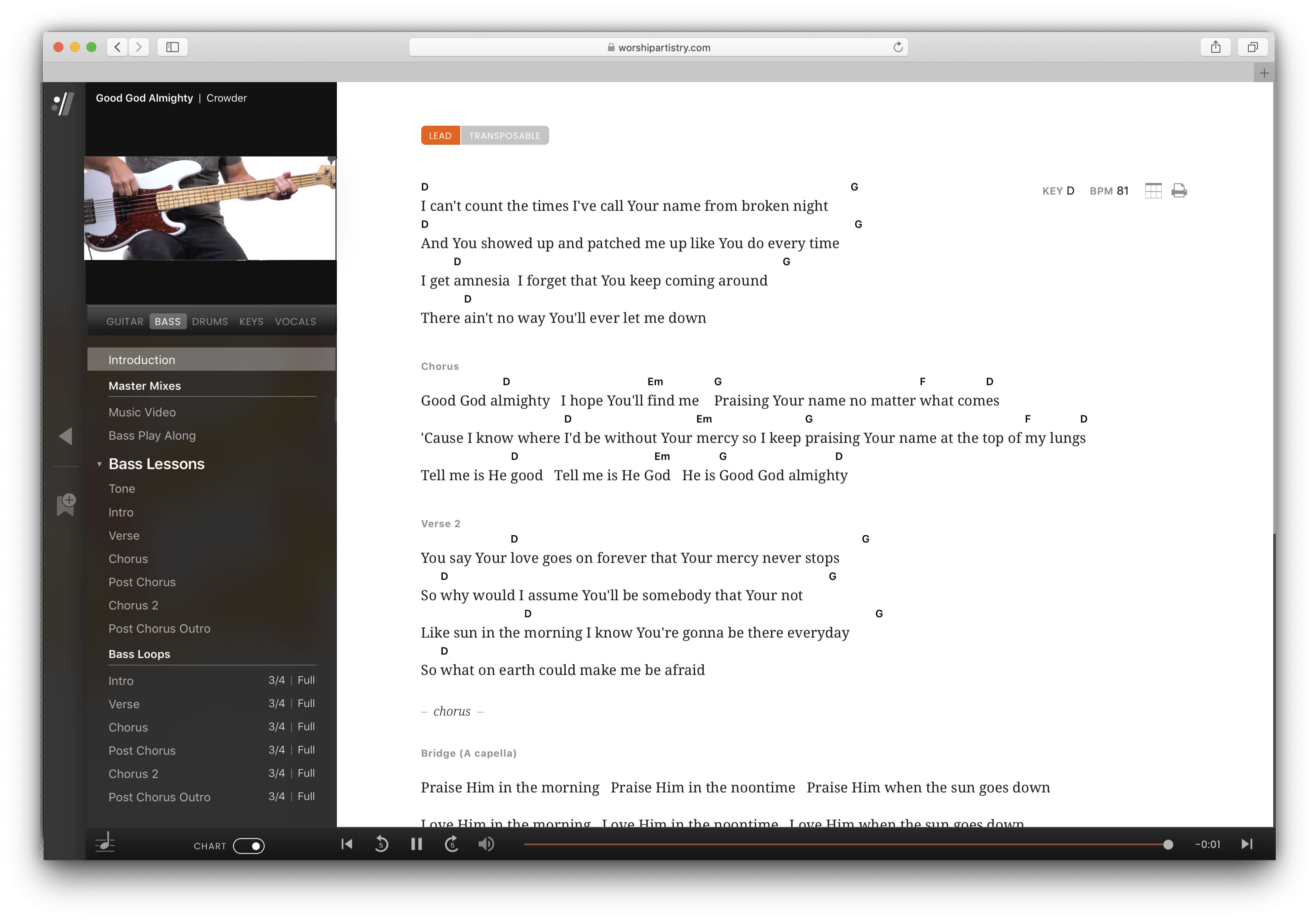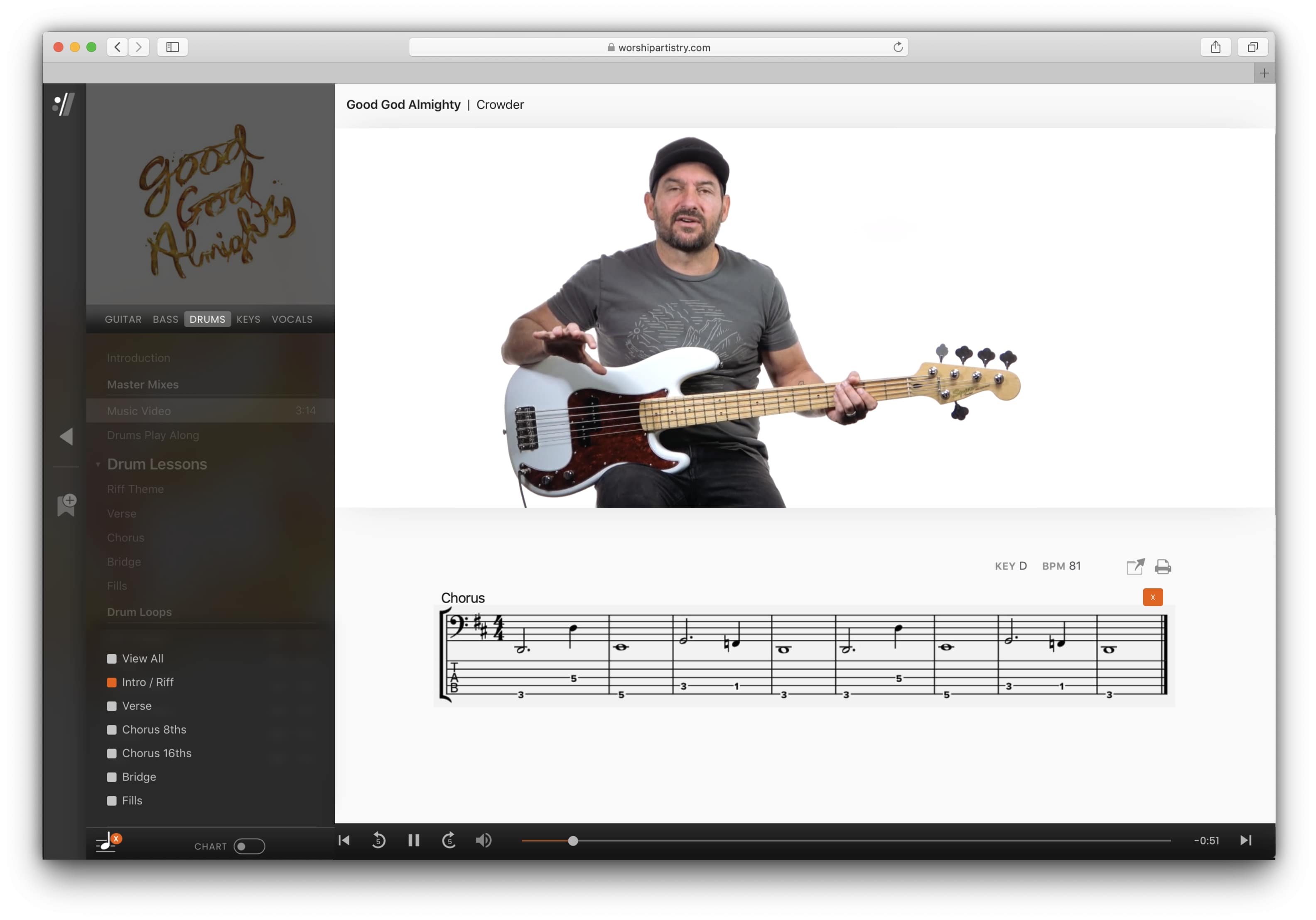 Worship Artistry's detailed Christian praise song tutorials and online lessons for every level of worship bassist.